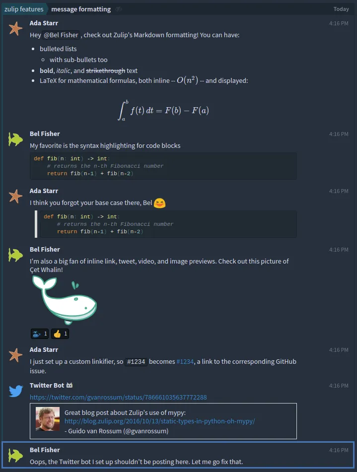 See the detailed changelog for dozens of other notable changes. If you administer a Zulip server, we encourage you to read at least the list of added features at the top, since there are a number of useful new settings introduced in this release that you may want to take advantage of.
